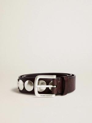 Gürtel Trinidad Aus Schwarzbraunem Leder Mit Silberfarbenen Nieten, Mann, Größe: 100