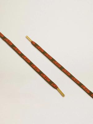 Militärgrüne Schnürsenkel Mit Kontrastierenden Orangefarbenen Laces-schriftzügen, Mann, Größe: 130