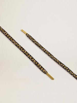 Schnürsenkel Mit Grau-schwarzem Animalprint Mit Goldfarbenem Kontrastlogo, Mann, Größe: 130