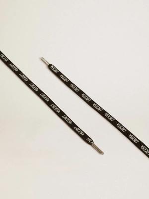 Schwarze Schnürsenkel Mit Silbernem Schriftzug, Mann, Größe: 110