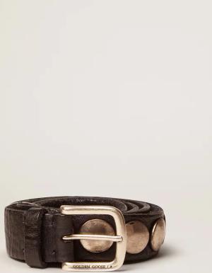 Schwarzer Gürtel Trinidad Aus Gewaschenem Leder Mit Nieten, Mann, Größe: 100