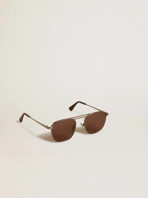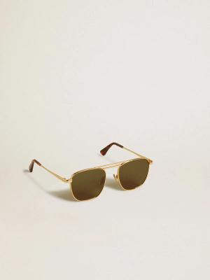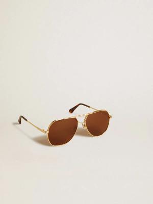 Sonnenbrille Mit Goldfarbenem Pilotengestell Und Braunen Gläsern, Mann, Größe: U