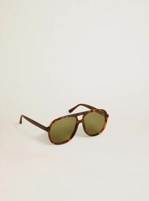 Sonnenbrille Mit Havannabraunem Pilotengestell Und Grünen Gläsern, Mann, Größe: U