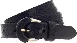 Herren-Gürtel mit Krokoprägung und Doppel-Schließe 4 cm | Leder-Gürtel für Herren 40mm Kroko-Optik | Kroko-Muster 4cm | Schwarz 85cm