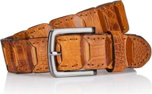 Premium Gürtel Handmade in EU Patchwork Leder 40 mm cognac, Farbe/Color:braun, Size US/EU:Bundweite 110 cm Gesamtlänge 125 cm W 43.3 XL