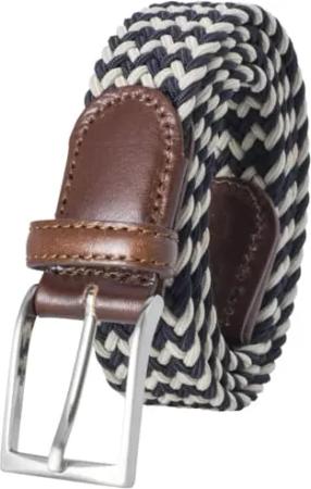 Stretch-Flecht-Gürtel Herren mit Rindsleder grau, Farbe/Color:grau, Size US/EU:Bundweite 90 cm Gesamtlänge 105 cm W 35.4 L