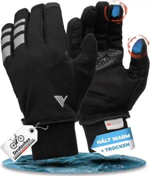 Fahrradhandschuhe mit Thermo-Fleece I Wasserfest & Winddichte Handschuhe I Touchscreen fähig I Winterhandschuhe für kalte Temperaturen I Fahrradhandschuhe Herren Winter (Schwarz, M)