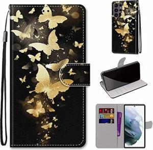 Handyhülle kompatibel mit Samsung Galaxy S22 Ultra 5G Schutztasche Wallet Cover 360 Case Etuis - Goldene Schmetterlingsgruppe