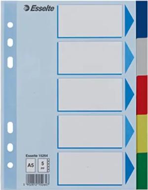 Esselte Register für A5, Deckblatt und 5 Trennblätter mit Taben, Mehrfarbig, Robuster Kunststoff, 15264