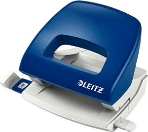 Kleiner Büro Locher aus Metall, 16 Blatt, Anschlagschiene mit Formatangaben, Ergonomisches Design, blau, 50380035