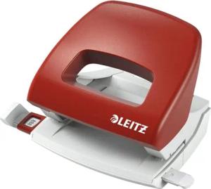 Kleiner Büro Locher aus Metall, 16 Blatt, Anschlagschiene mit Formatangaben, Ergonomisches Design, rot, 50380025