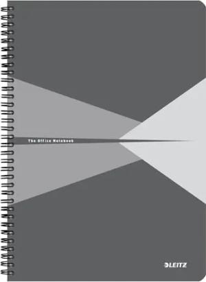Office Collegeblock A4 kariert, Notizbuch mit Spiralbindung, PP-Einband, 360 Grad Öffnung, 180 Seiten / 90 Blatt FSC-zertifiziertes Papier (80 g/m²), für Büro & Schule, Grau, 44951085