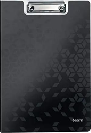 WOW A4 Klemmbrettmappe mit Abdeckung, Leichtes Polyfoam, Strapazierfähiges Klemmbrett mit Abdeckung, Für bis zu 80 Blatt, Schwarz, 41990095