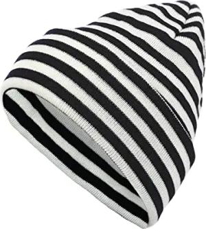 Unisex Strickmütze Mütze gestreift Geringelt - Damen Herren Ringelmütze aus Reiner Schurwolle Merino in Navy/Weiß