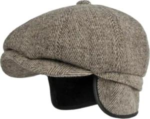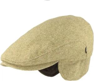 Kent Flatcap Herren Schiebermütze Fischgrätmuster Ohrenklappen Herbst Winter beige 59 cm