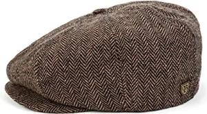 Brooklin Classic Herringbone Flatcap Schirmmütze 100% Wolle Herren Herbst Winter braun-beige 62 cm