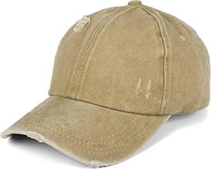 Unisex Baseball Cap Destroyed Look mit Rissen, 6 Panel Cap Einfarbig, Basecap Schnalle verstellbar 04023092, Farbe:Hellbraun