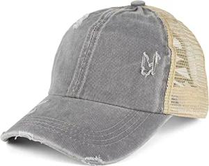 Damen Baseball Cap im Washed Used Look mit Mesh Einsatz | Ponytail Cap für hohen Zopf | Verstellbare 6-Panel Schildkappe für Sommer und Freizeit, Farbe:Grau