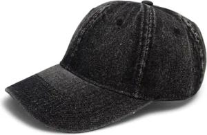 Jeans Baseball Cap Unisex | Denim Basecap mit Verstellbarer Schnalle | 6-Panel Cap mit Gebogenem Schirm & Luftlöchern | Atmungsaktive Baumwoll-Mütze für Damen & Herren, Farbe:Schwarz