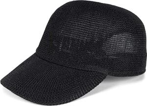 Papierstroh Baseball Cap einfarbig | luftiges Sommer Basecap mit Metallschnalle verstellbar | Unisex Cap mit Schweißband für Damen und Herren, Farbe:Schwarz