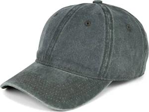 Unisex Baseball Cap Vintage Look verstellbar 6-Panel Cappy in Washed Optik mit gebogenem Schirm Baumwolle Retro Cap Damen und Herren, Farbe:Dunkelgrau