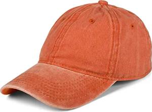 Unisex Baseball Cap Vintage Look verstellbar 6-Panel Cappy in Washed Optik mit gebogenem Schirm Baumwolle Retro Cap Damen und Herren, Farbe:Orange