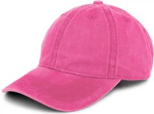 Unisex Baseball Cap Vintage Look verstellbar 6-Panel Cappy in Washed Optik mit gebogenem Schirm Baumwolle Retro Cap Damen und Herren, Farbe:Dunkelrosa