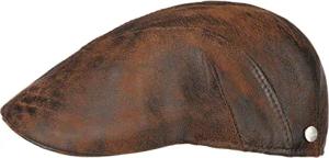 Leder Flatcap Herren Made in Italy Schirmmütze mit Baumwollfutter Ledercap Used-Look Sommer Winter braun 60 cm