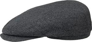 Belfast Flatcap Schiebermütze Herrenkappe Herringbone mit Innenfutter Baumwolle Herbst Winter schwarz-grau 58 cm