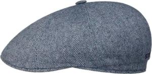 Herringbone Silk Driver Flatcap Schirmmütze Elegante Schiebermütze Fischgrätmuster UV-Schutz 60 Made in EU Unisex Frühjahr bis Winter blau 61 cm