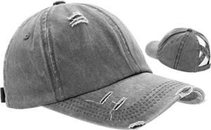 Baseball Cap Damen Schirmmütze Baseballkappe Pferdeschwanz Ponytail Zopfloch Kappe Frauen Mütze - K225 (K225-Grau)