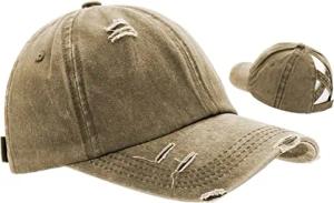 Baseball Cap Damen Schirmmütze Baseballkappe Pferdeschwanz Ponytail Zopfloch Kappe Frauen Mütze - K225 (K225-Vintagekhaki)