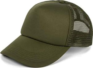 Unisex 5-Panel Trucker Cap mit Mesh-Einsatz | verstellbares Basecap mit Click Snap Verschluss | luftiges Netz Cap für Damen und Herren, Farbe:Dunkeloliv