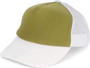 Unisex 5-Panel Trucker Cap mit Mesh-Einsatz | verstellbares Basecap mit Click Snap Verschluss | luftiges Netz Cap für Damen und Herren, Farbe:Oliv-Weiß