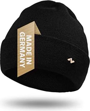 Merino Mütze für Herren & Damen | 100% Feinste Merinowolle | Warm, Weich & Strechy | Wollmütze, Wintermütze, Strickmütze | Schwarz