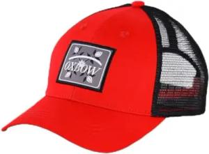 Unisex 5-Panel Trucker Cap mit Mesh-Einsatz | verstellbares Basecap mit Click Snap Verschluss | luftiges Netz Cap für Damen und Herren, Farbe:Weiß-Bordeaux-Rot