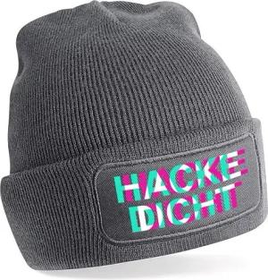 Beanie Strickmütze mit Spruch | HACKE DICHT Rauscheffekt | grau | Unisex SoftTouch angenehm weiche und warme Wintermütze | OneSize Einheitsgröße für Erwachsene