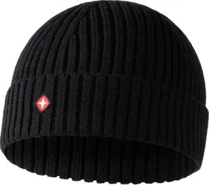 Nordföhn Knitted Beanie Merinowolle Strickmütze Schwarz Rubber