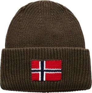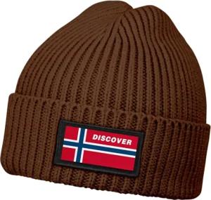 Herren Beanie Wintermütze mit Patch Norwegen Flagge Aufdruck Print Strickmütze Männer Rippstrick braun Unisize