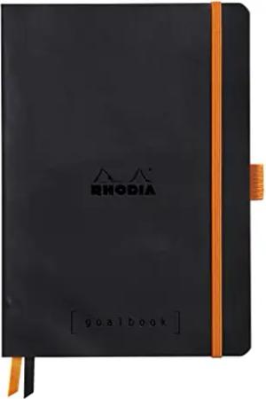 117762C Notizheft Goalbook (DIN A5, 14,8 x 21 cm, kariert, praktisch und trendige, mit weichem Deckel, 90g, elfenbeinfarbigem Papier, 120 Blatt, Gummizug, Lesezeichen) 1 Stück, Schwarz