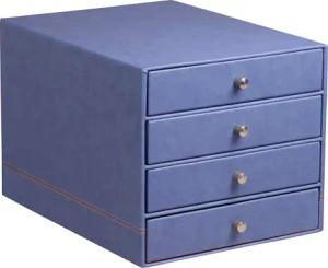 318868C Schubladenbox (mit 4 Schubladen, Griffe aus Metall, Kunstleder, elegant und praktisch, ideal für Ihr Büro oder Ihr zu Hause) 1 Stück, saphirblau