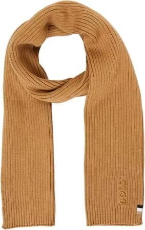 Damen langer Strick Schal mit Wellen Strickmuster, warmer Winter Strickschal Einfarbig 01018168, Farbe:Cognac