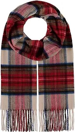 Schal aus 100% Cashmink für Damen & Herren - 180 x 30 cm – mit großem Karo-Muster & Fransen - Made IN Germany – super weich & bequem – Rot