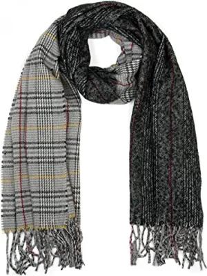 breiter XXL Schal mit Fransen im Day and Night Design mit schottischem Tartan Plaid Muster, Unisex 01018138, Farbe:Schwarz