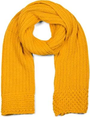 Damen langer Strick Schal mit Rippen und Perl Strickmuster, warmer Winter Strickschal Einfarbig 01018164, Farbe:Curry