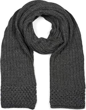 Damen langer Strick Schal mit Rippen und Perl Strickmuster, warmer Winter Strickschal Einfarbig 01018164, Farbe:Dunkelgrau