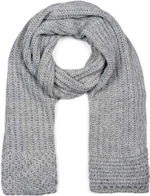 Damen langer Strick Schal mit Wellen Strickmuster, warmer Winter Strickschal Einfarbig 01018168, Farbe:Grau