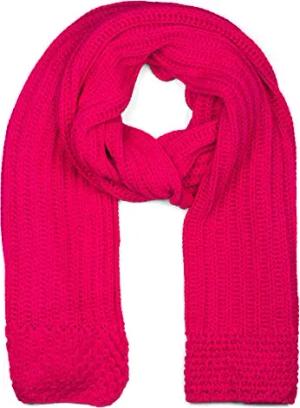 Damen langer Strick Schal mit Rippen und Perl Strickmuster, warmer Winter Strickschal Einfarbig 01018164, Farbe:Pink