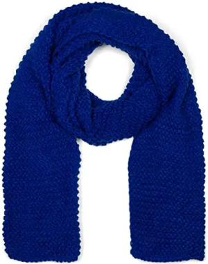 Damen langer Strick Schal mit Wellen Strickmuster, warmer Winter Strickschal Einfarbig 01018168, Farbe:Blau