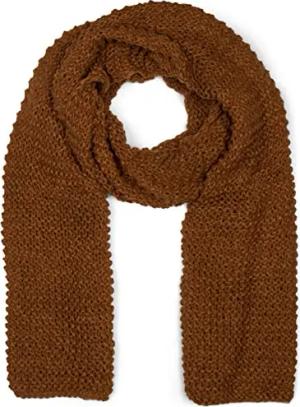 Damen langer Strick Schal mit Wellen Strickmuster, warmer Winter Strickschal Einfarbig 01018168, Farbe:Cognac